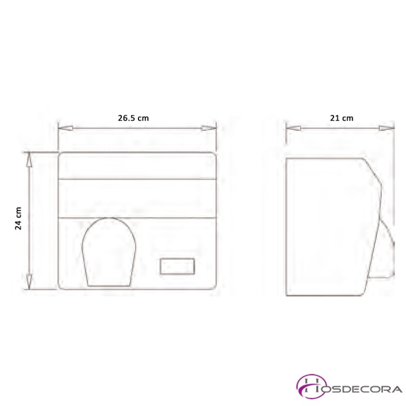 - Dimensiones: largo 26.5 cm x ancho 21 cm x alto 24 cm.