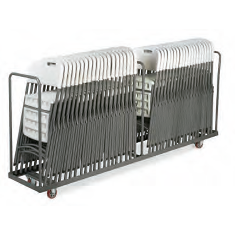 Carro diseñado para transportar de manera eficiente hasta 40 sillas plegables.