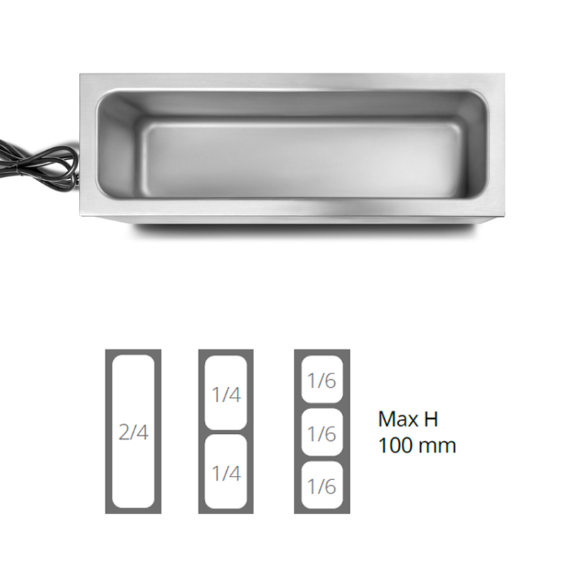 - Capacidad cubetas 2/4 - 2 und de 1/4 o 3 und de 1/6.