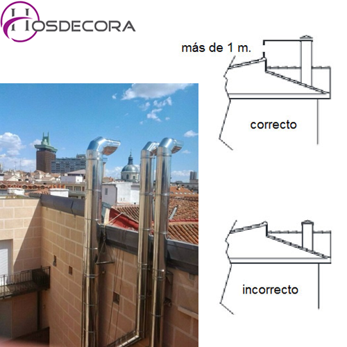 La chimenea vertical debe superar en un metro cualquier edificio situado a menos de diez metros