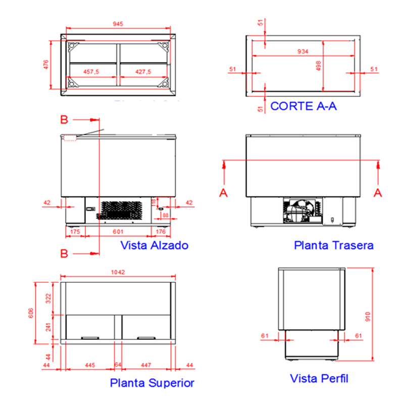 - Dimensiones: Ancho 104.2 x Fondo 60.6 x Alto 91 cm.