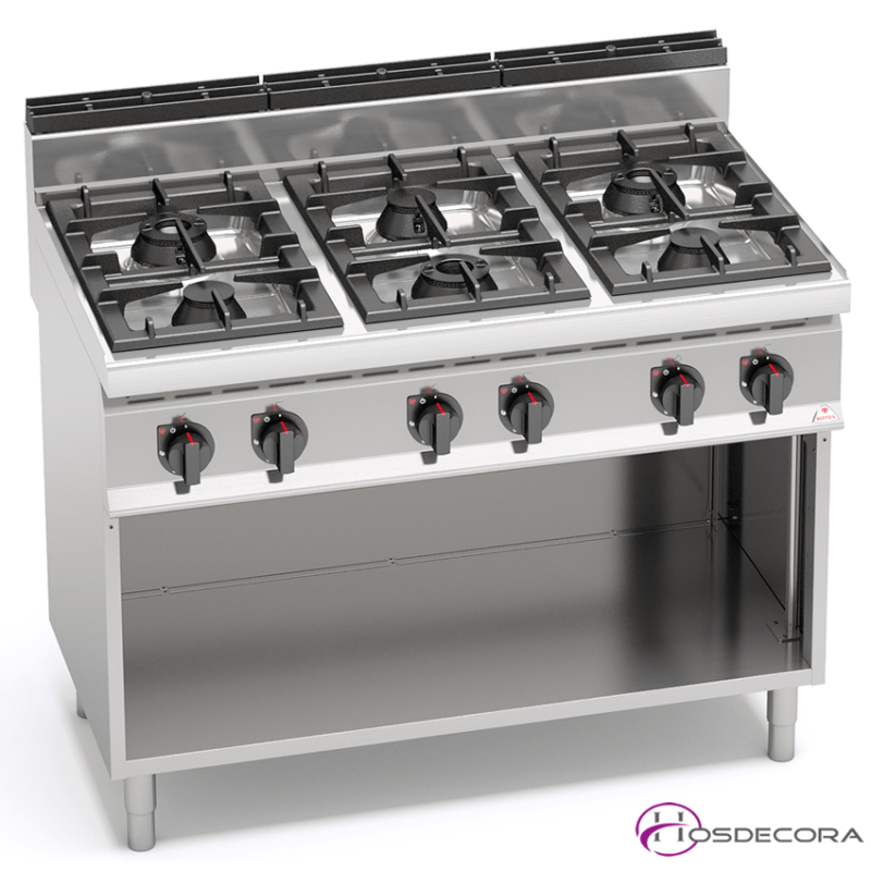 Cocina para Restaurantes Hosteleros profesional a gas G7F6M con 6 quemadores potentes para cocinas de restaurantes.