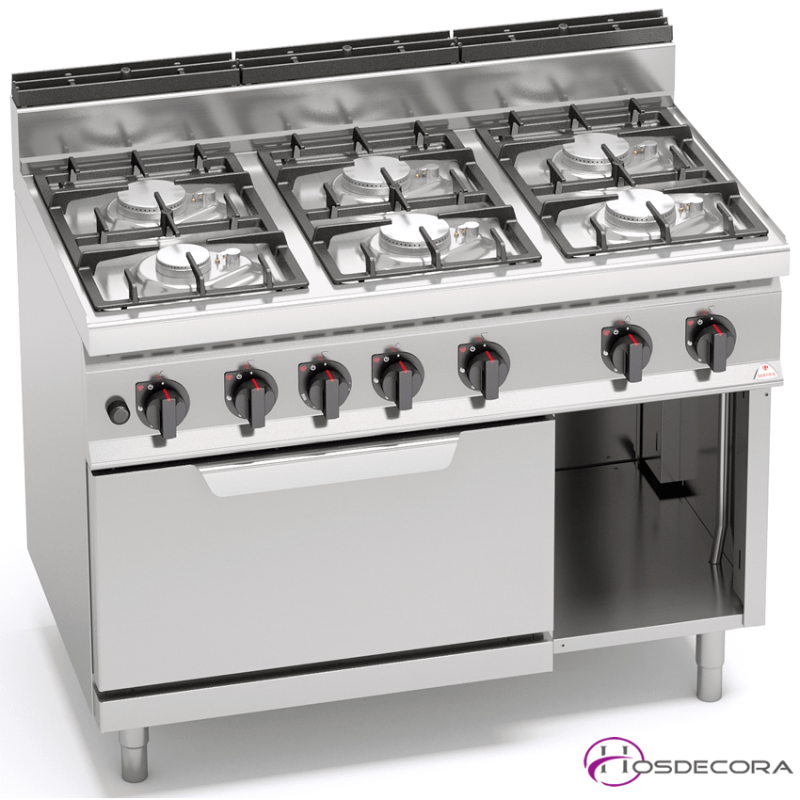 Cocina para Colectividades con Horno a Gas profesional G7F4+FG con 6 quemadores potentes para cocinas de restaurantes.