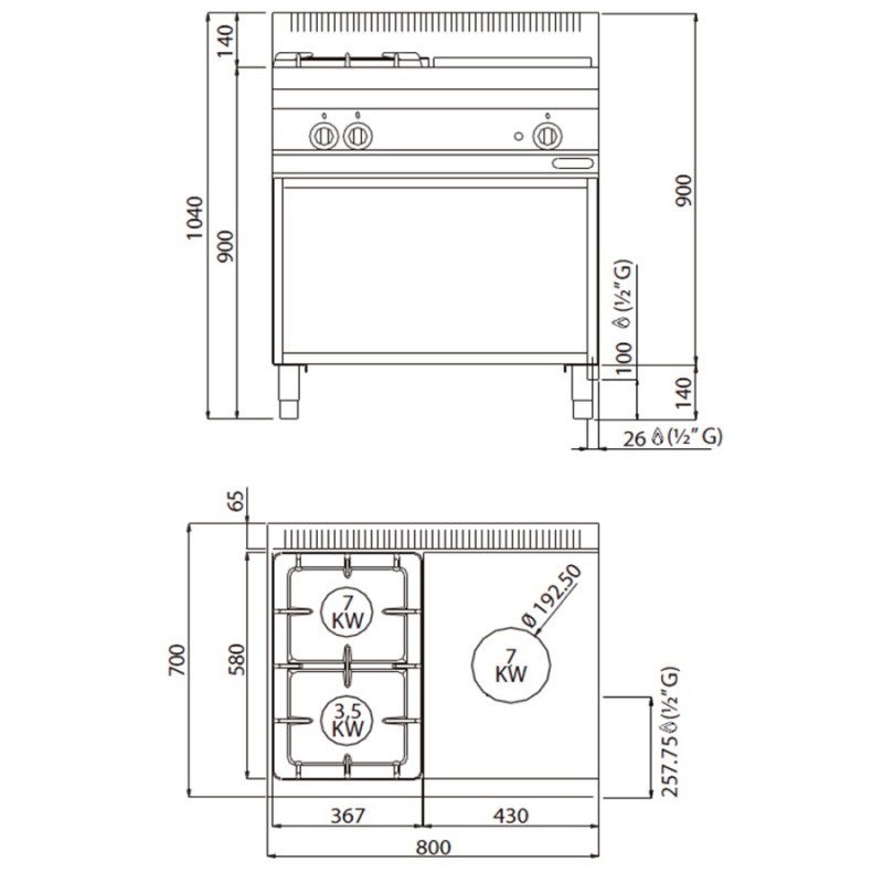 Potencia 2 Fuegos: 2 x 7 kW / 1 x 3.5 kW.