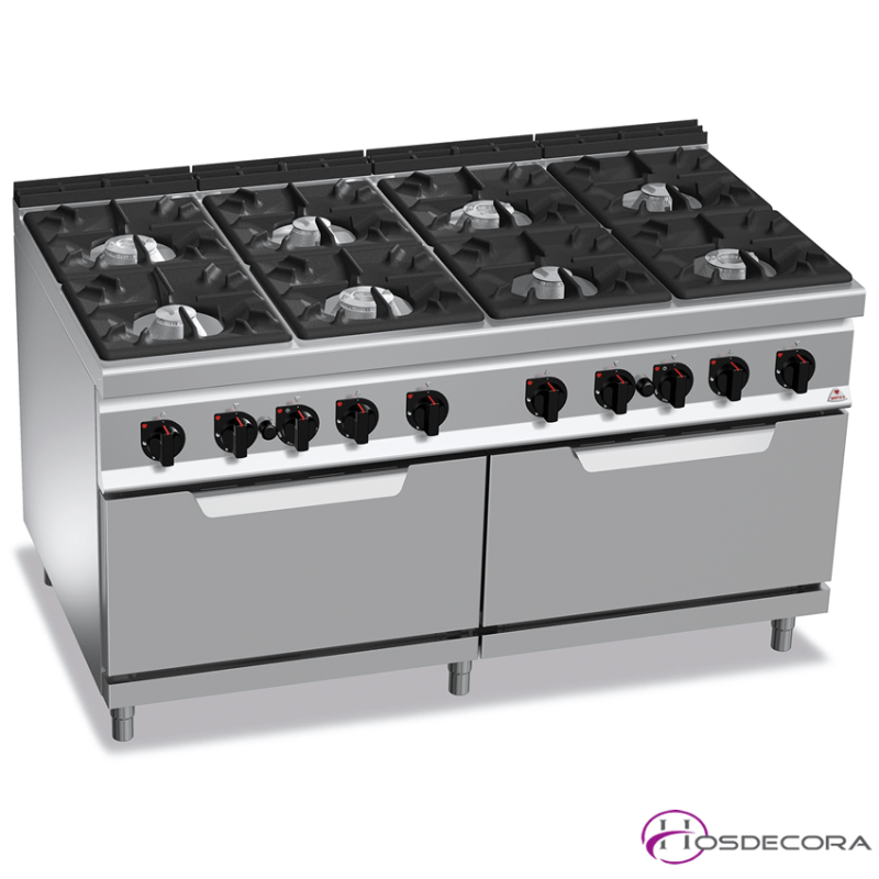 Cocina a Gas 8 Fuegos 12, 7 y 3.5 Kw 2 Hornos 7.8 Kw. 03-G9F8+2FG