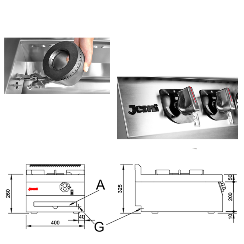 Fundición especial, corona de doble llama auto-estabilizada. Extraíbles para una fácil limpieza.