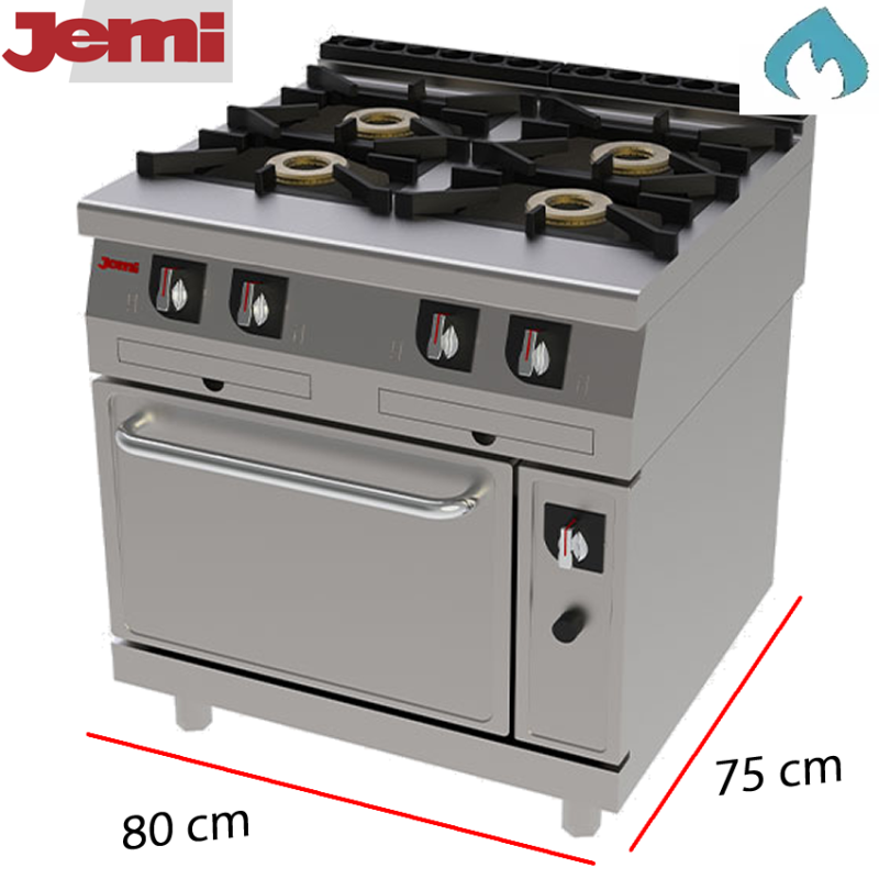 Cocina con horno a gas 4 fuegos 34.6 Kw. potente