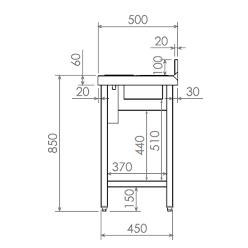 Dimensiones: 100 x 50 x 85 cm. Capacidad de 5GN 1/6 - 7GN 1/9.