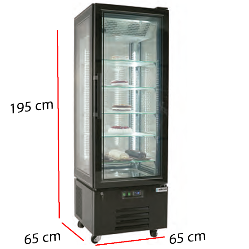 Su diseño de 4 caras acristaladas con iluminación LED realza la presentación de tus productos, garantizando máxima visibilidad y