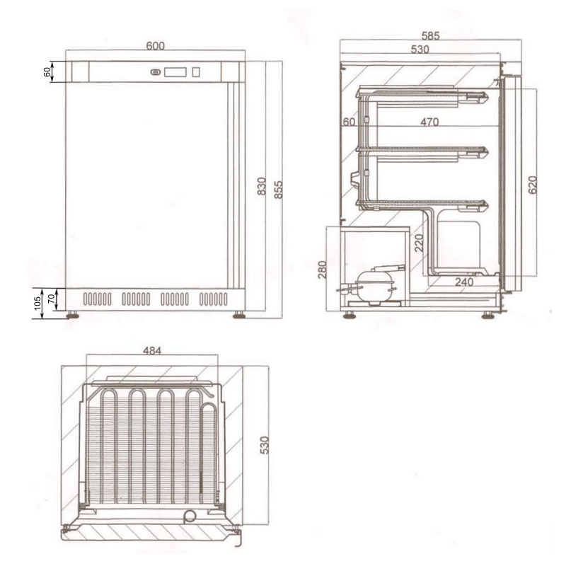 2 estantes fijos de congelación - Color de estante Blanco - Medidas de estante 490 x 380 mm