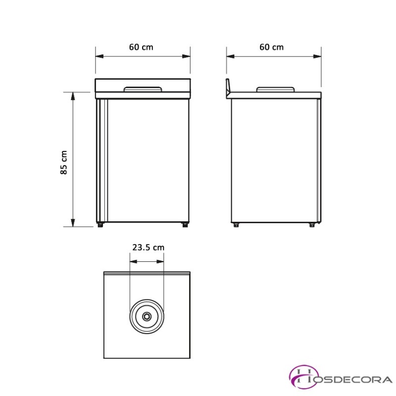 - Dimensiones: largo 60 cm x ancho 60 cm x alto 85 cm.
