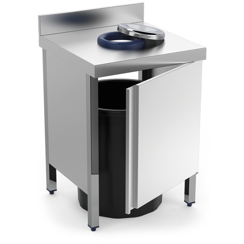 Esta mesa está preparada para alojar contenedores de hasta 780 mm de altura, con un diámetro de hasta 510 mm.