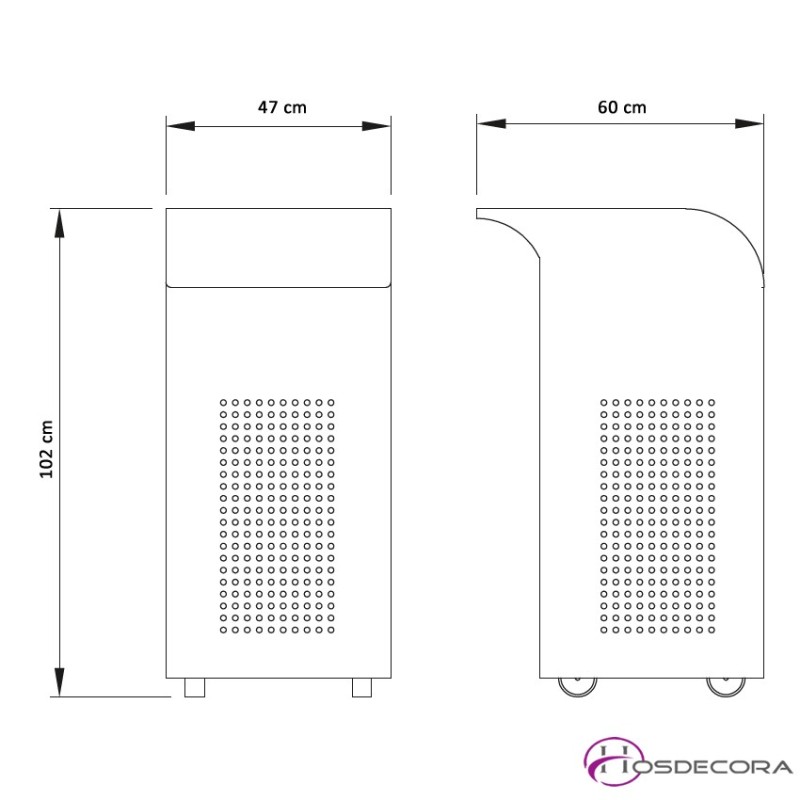 - Dimensiones: largo 47 cm x ancho 60 cm x alto 102 cm.