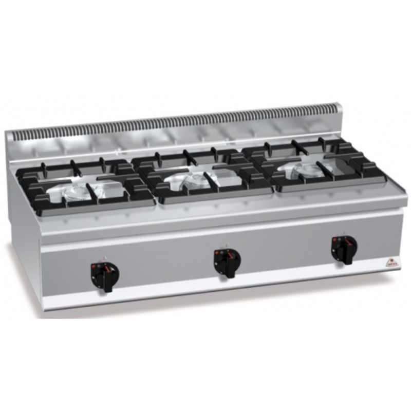 Cocina a gas 3 fuegos 12 y 7 Kw Fondo 60 cm