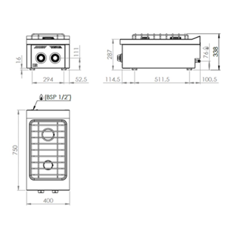 - Quemador 2 : 1 quemador de 7.5 Kw y 1 de 5.5 Kw.