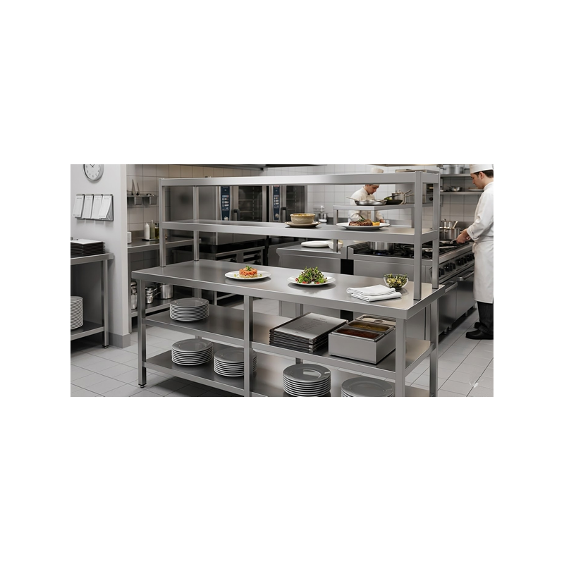 Estante de acero inoxidable para iluminar y mantener la temperatura de los platos recién cocinados antes de servirlos