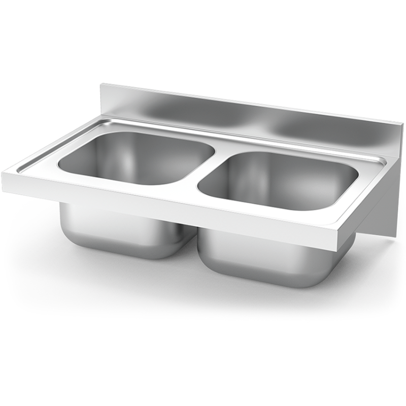 Fregadero inox que se cuelga en la pared con dos pozas sin escurridor