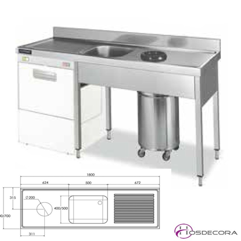 Fregadero con desbarace y Hueco Lavavajillas 180 x 70 cm.