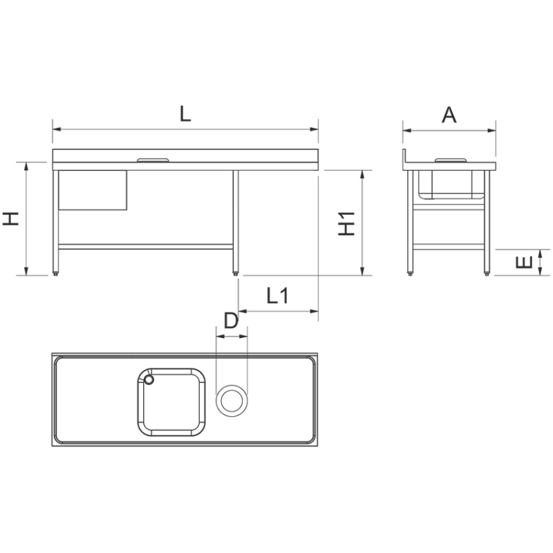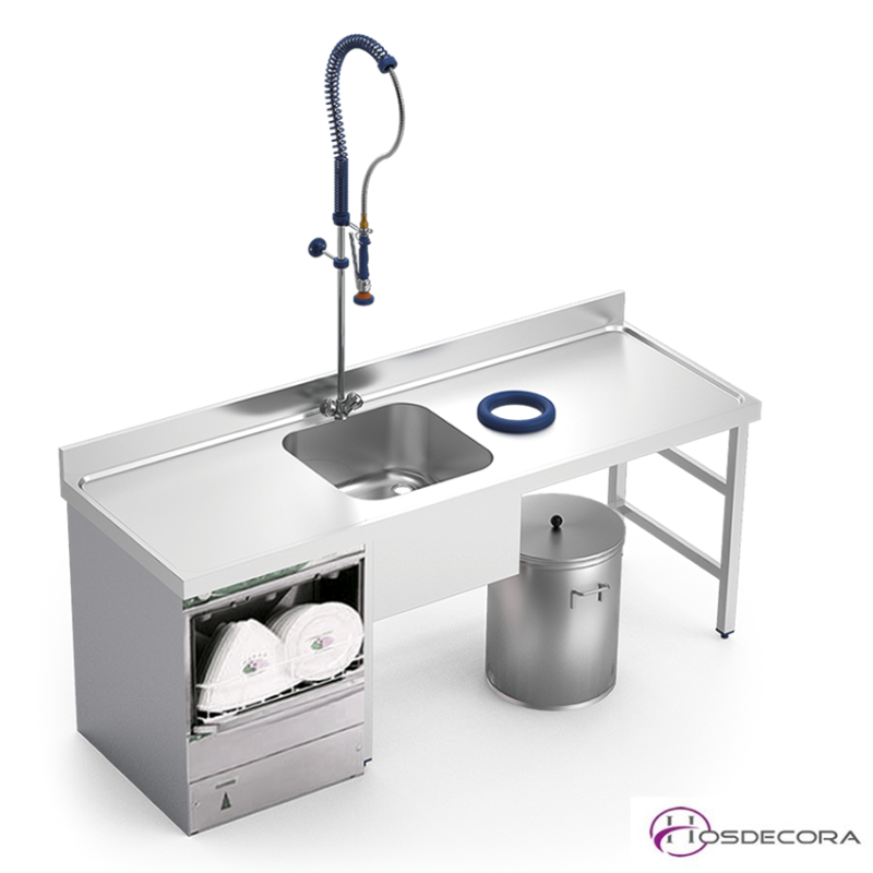 Mesa de prelavado con cubeta y hueco lavavajillas 06-074436+