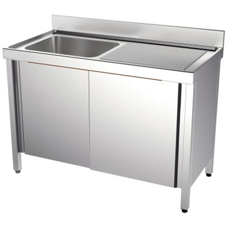 Fregadero en inox. con puertas correderas 1 cubeta y escurridor.