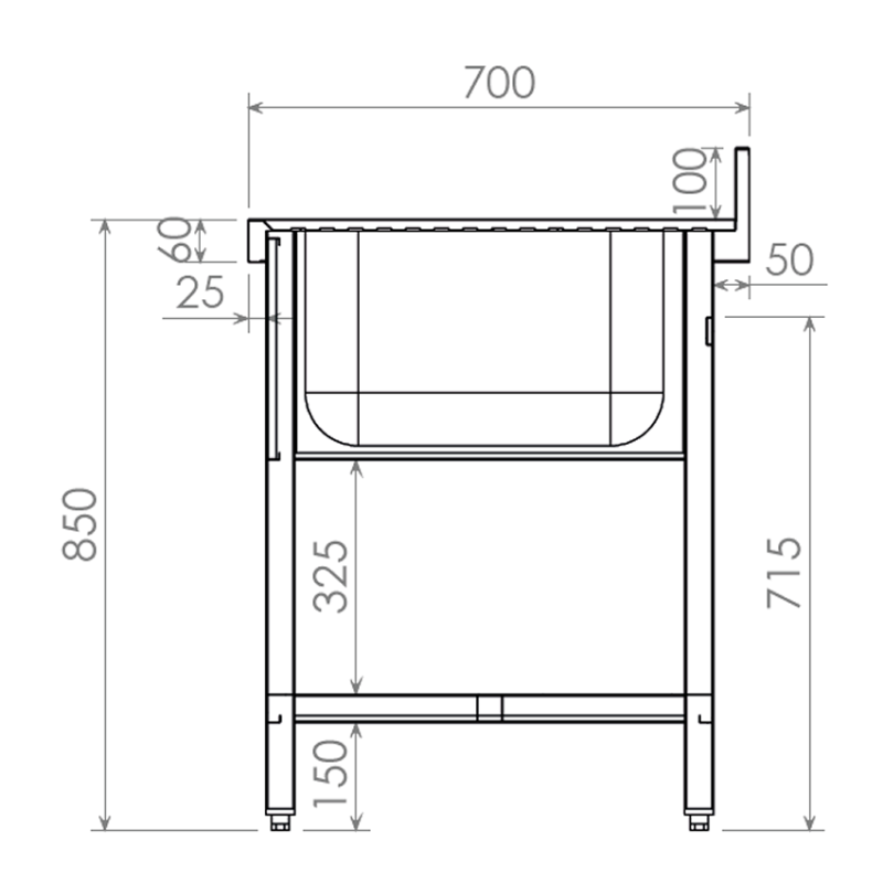 Fregadero de 1 cuba soldado Fondo 70 cm 66-IDL08070