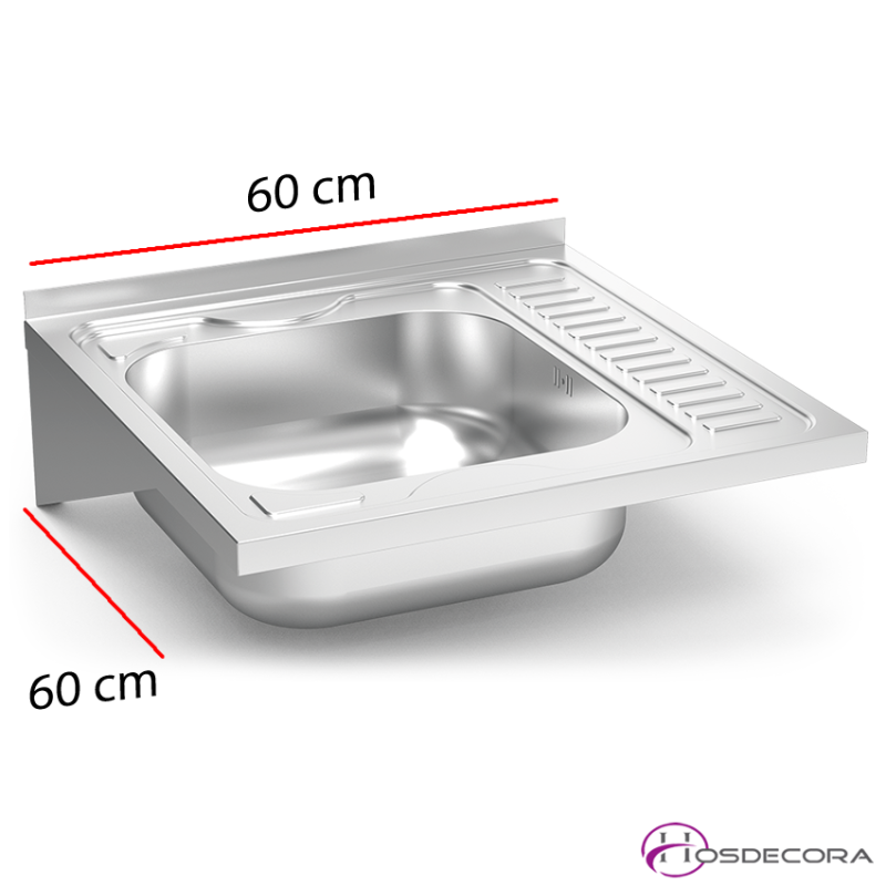 Fregadero compacto de acero inoxidable con dimensiones de 600x600 mm