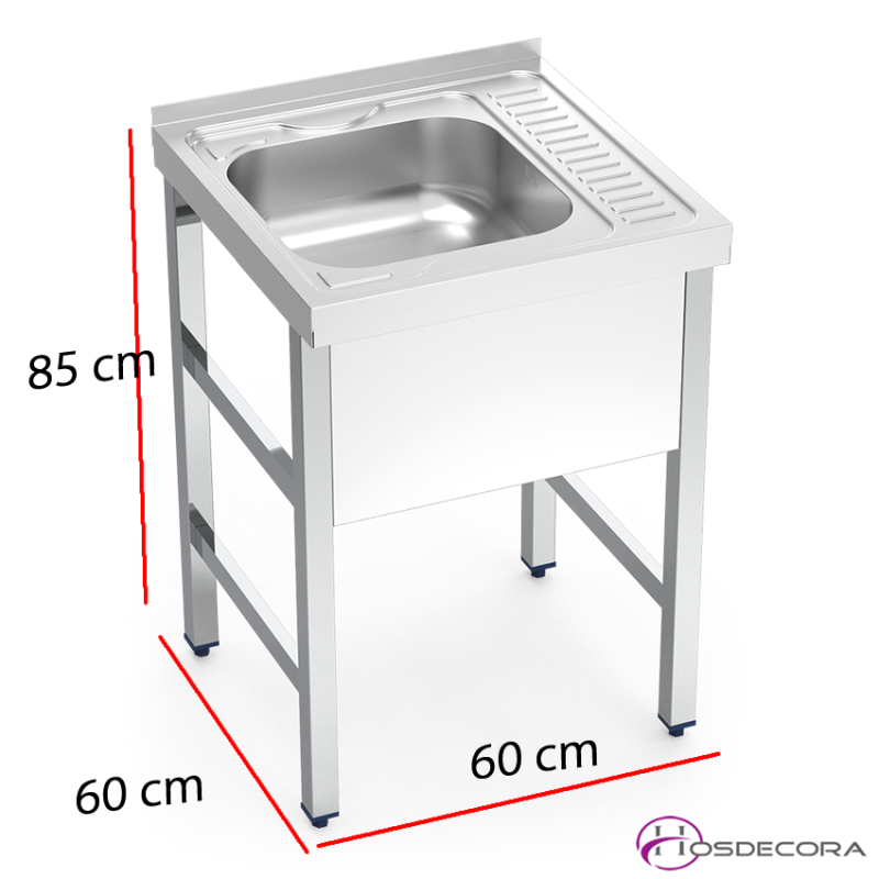 Fregadero con patas de acero inoxidable con dimensiones de 600x600 mm