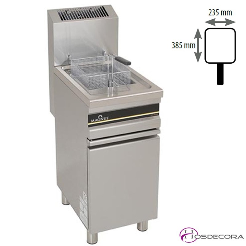 Freidora a gas de 14 kW con mueble de acero.