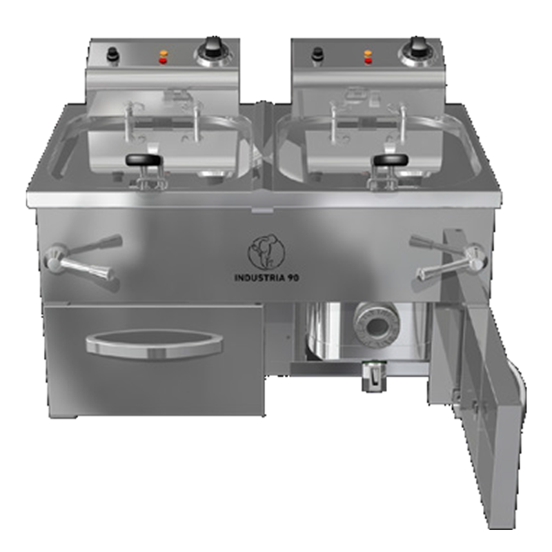 Freidora Doble de Agua y aceite con sistema de elevación.