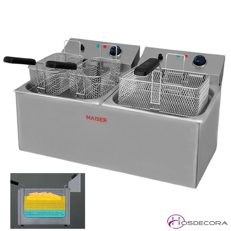 Freidora Eléctrica DOBLE 6 Cestas 10+10-12+12 L 9Kw. 39-F12/106X2