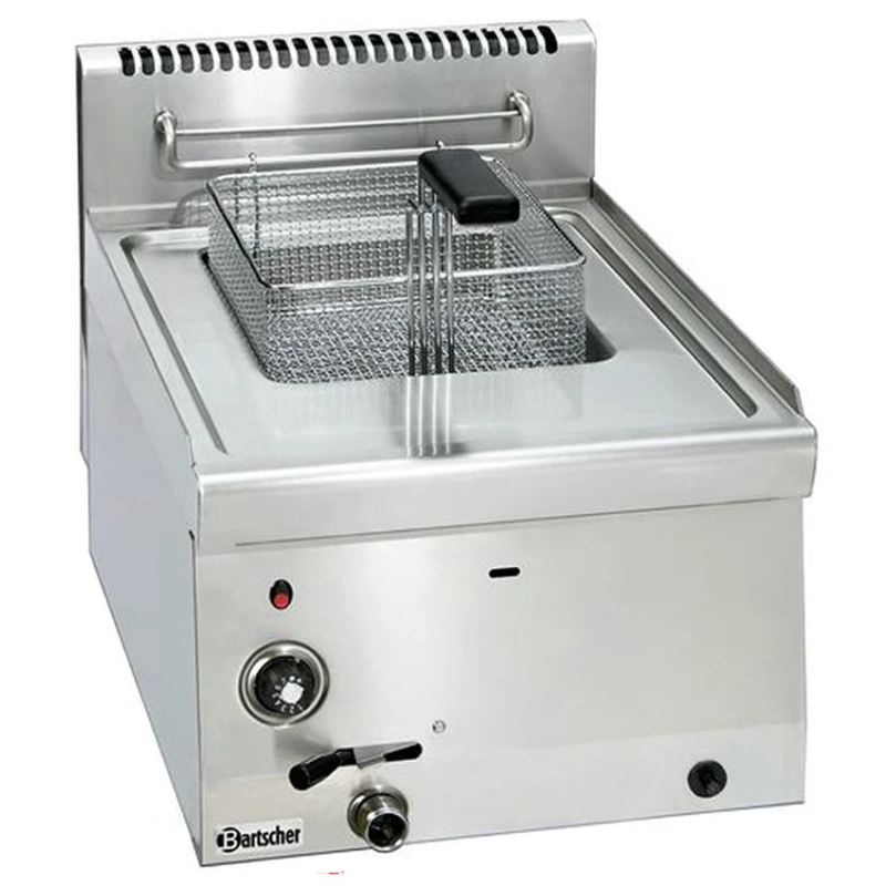 Freidora potente de gas en acero inoxidable 18/10 larga vida útil y en versión compacta.