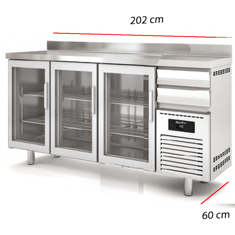 Frente mostrador frío de 3 puertas cristal 202x60 cm