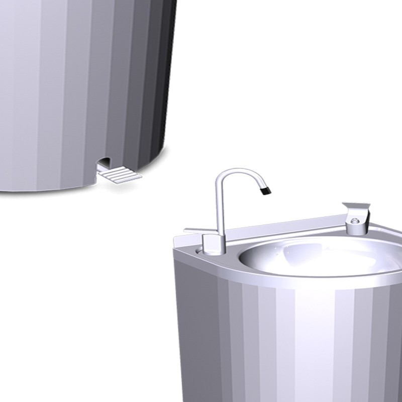 Surtidor industrial con pedal de agua en acero con forma cilíndrica 064212. ideal para instalaciones deportivas, colegios, gimnasios y centros comerciales.