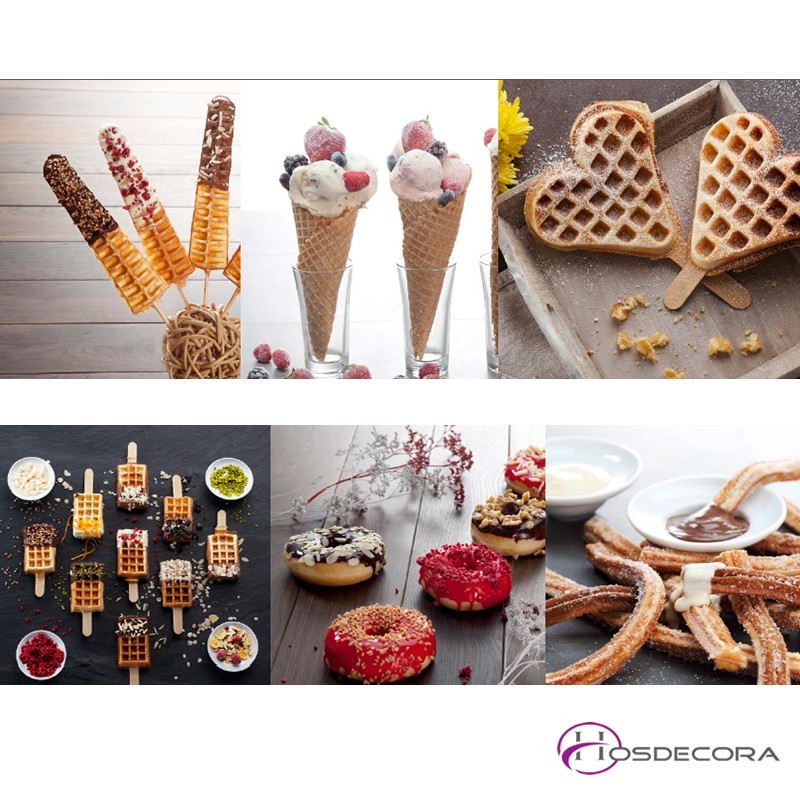 - Para hacer mini donuts, churros, piruletas agbar, piruletas gofre, galletas y piruletas corazón.