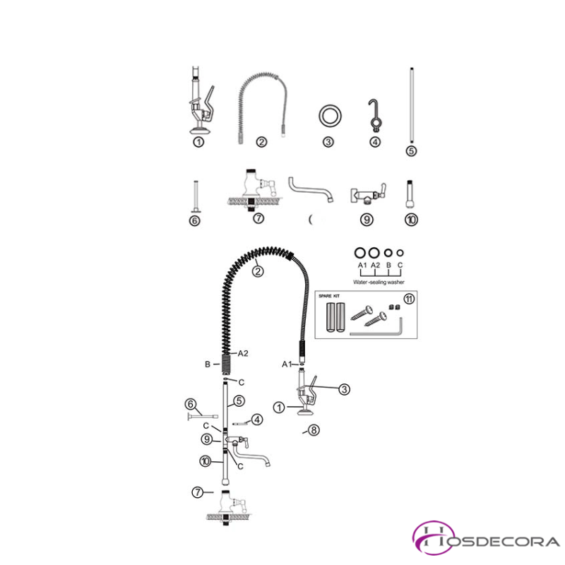Incluye como dotación estándar todos los accesorios para su fijación, y los latiguillos flexibles para la conexión a la red.