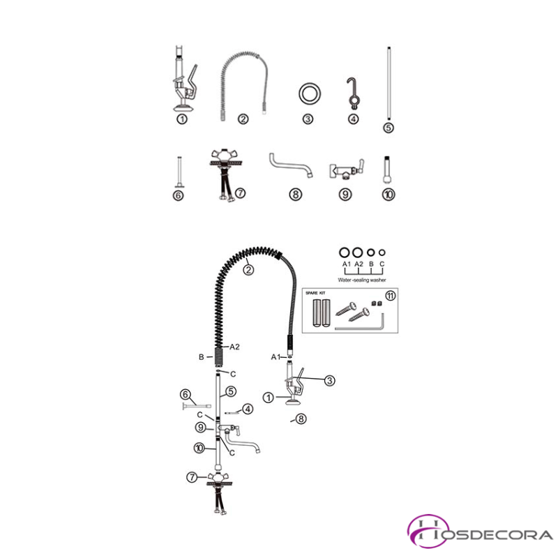 Incluye como dotación estándar todos los accesorios para su fijación, y los latiguillos flexibles para la conexión a la red.