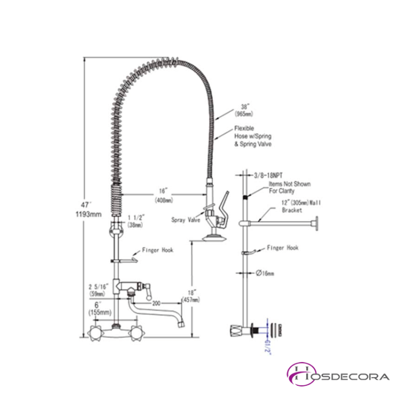 Grifo Ducha dos Aguas de Pared con Caño 50-GDP2CS1
