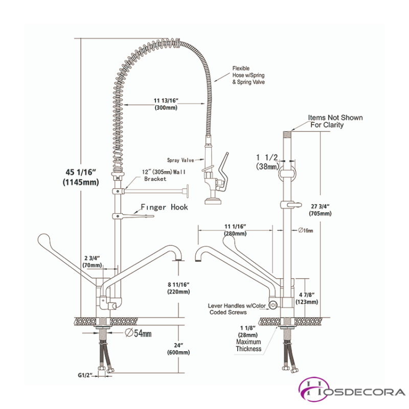 Incluye como dotación estándar todos los accesorios para su fijación, y los latiguillos flexibles para la conexión a la red.
