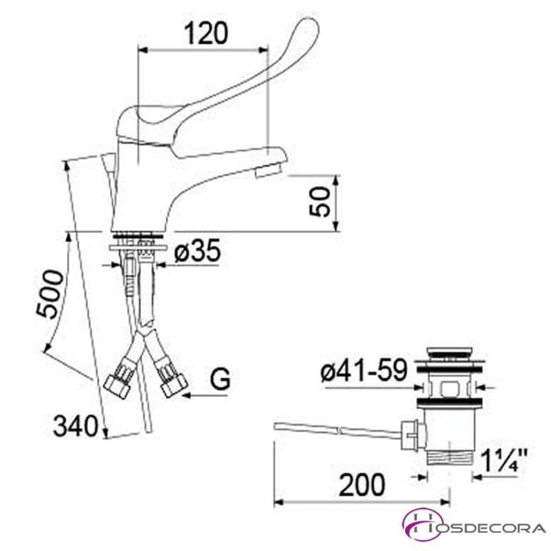 Grifo para sitios reducidos o ocupando poco espacio y con el mando gerontológico, para debajo de la barra del bar o sitios reducidos
