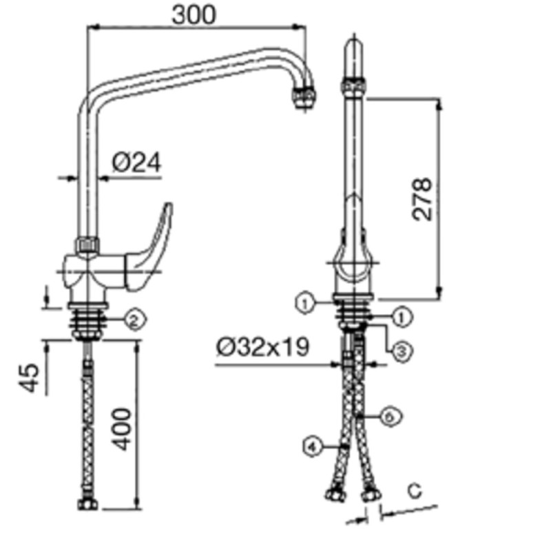 Grifo para llenado de ollas por su altura R0020238 , para ponerlo en el fregadero con el caño casi en ángulo de 90 grados para la mejor entrada de los utensilios, y con una maneta mono mando para indicar la cantidad de agua y la mezcla entre agua caliente y fría.