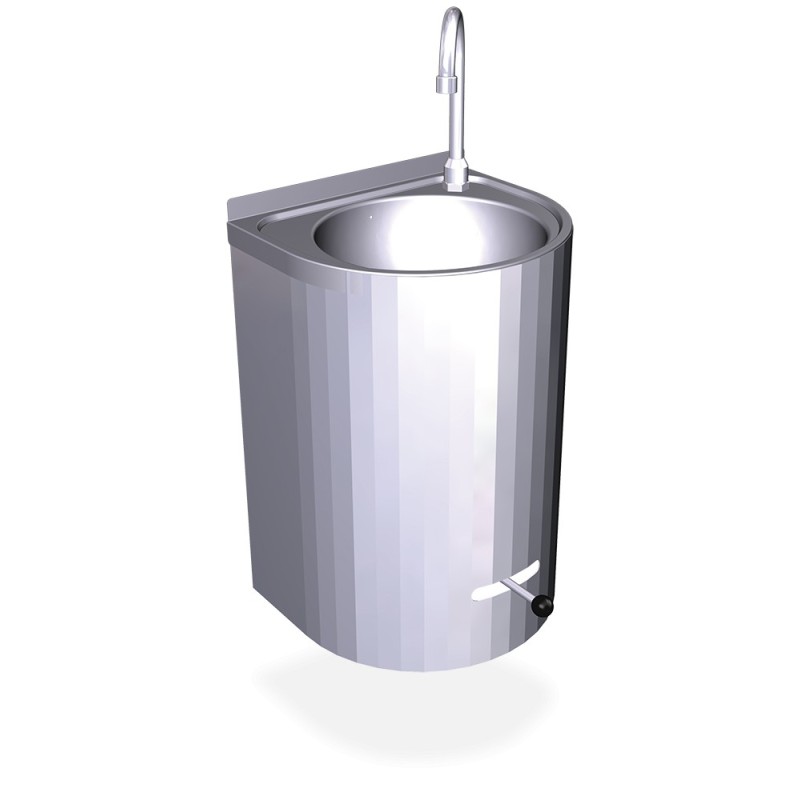Lavamanos industrial de dos aguas cilíndrico con palanca fabricado en acero inox.