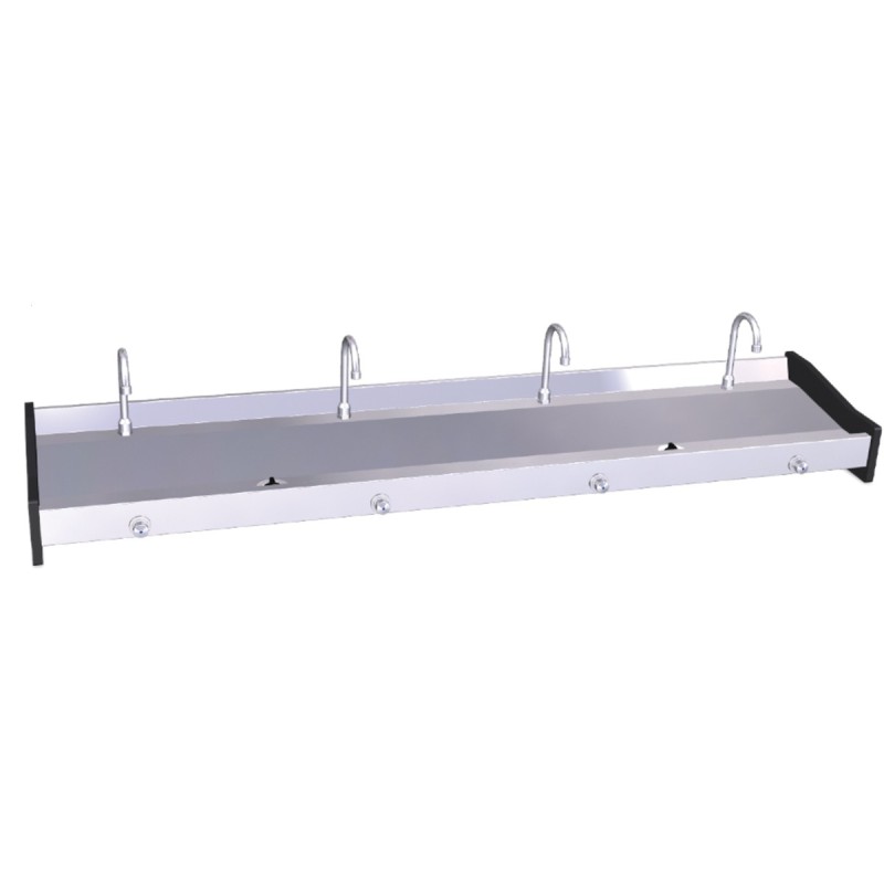 Lavamanos 4 puestos: largo 200 x fondo 45 x alto 19 cm. Peso 22 Kg.