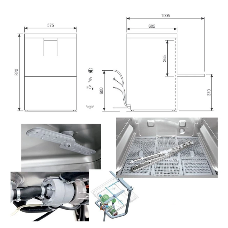 Lavavajillas para cafeterías altura de puerta ideal para cocinas profesionales con una altura de puerta de 36.5 cm.