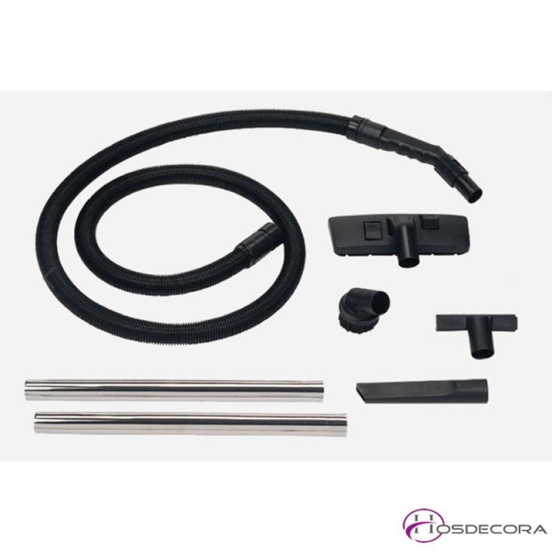 -Se suministra con: manguera flexible, 2 tubos de metal rectos, boquilla doble uso, boquilla para tapicería, cepillo redondo y boquilla plana.