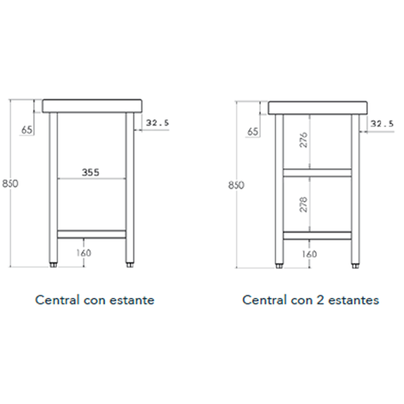 -Acero inoxidable ISI 304 18/10 satinado.-Otras dimensiones de mesa en desplegable.