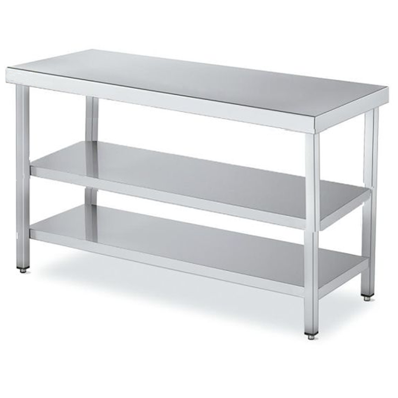 Mesa de trabajo central para cocinas con 2 estantes fondo 55 cm