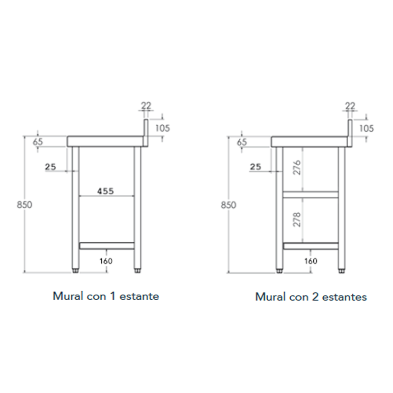 Mesa mural cocina 2 estantes Fondo 60 cm. Desde 60 cm