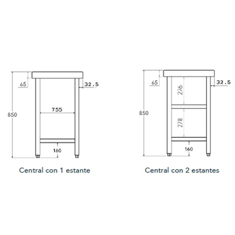 Mesa Central con Estante Fondo 90 cm - Desde 60 a 280 cm