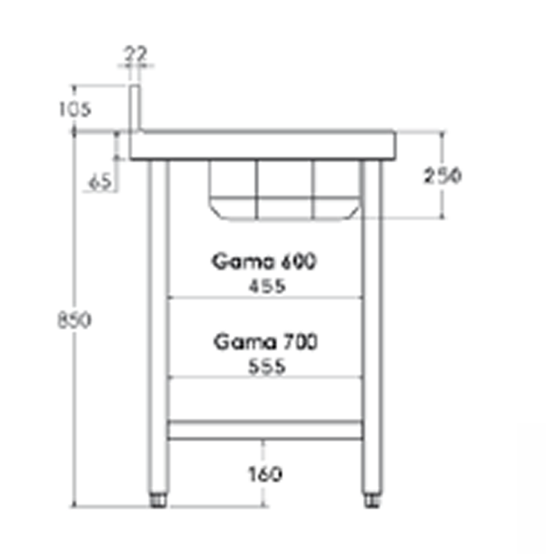 Mesa con Cubeta y Salva aguas Fondo 60 cm. Dede 100 a 200 cm