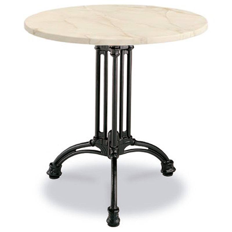 Pie negro de aluminio fundido con base de tres patas y distintos hierros que la unen con el tablero, para el interior del bar o cafetería.